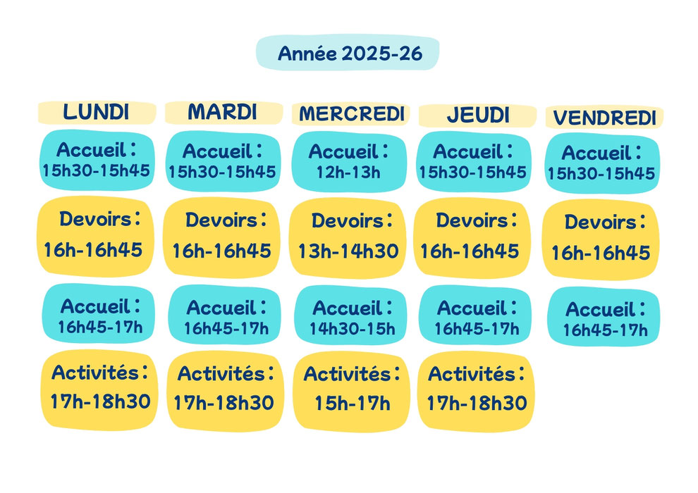 18h45 des sessions d’aide aux devoirs et de remédiation ainsi que des sessions