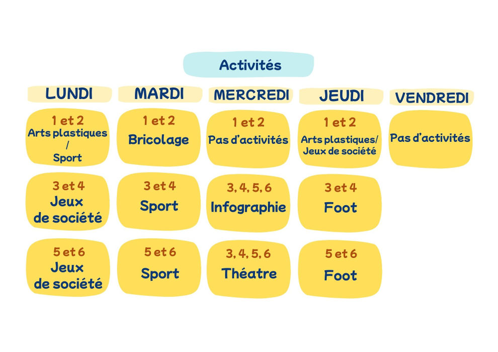 « jeux et activités » les vendredis de 17h15 à 18h45.
